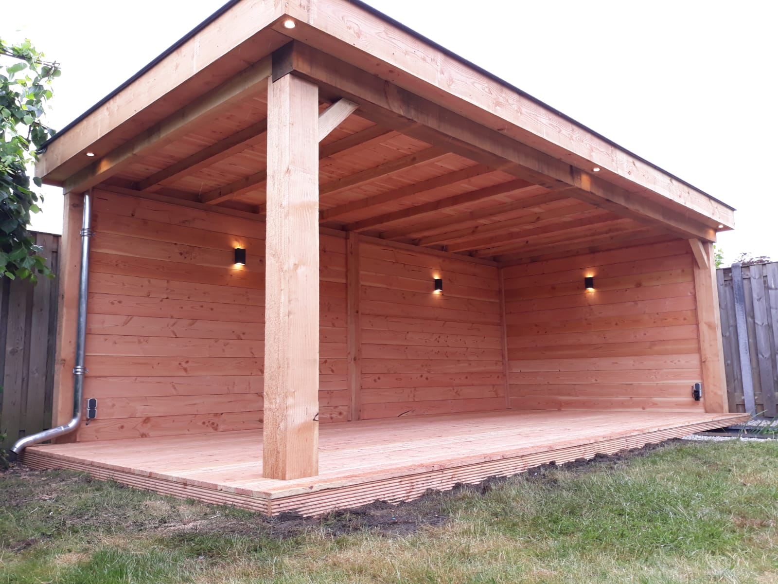 Een douglas paal 200 x 200 mm 2-ex logs is een mooie paal om een overkapping, veranda of bijvoorbeeld een carport mee te realiseren.
