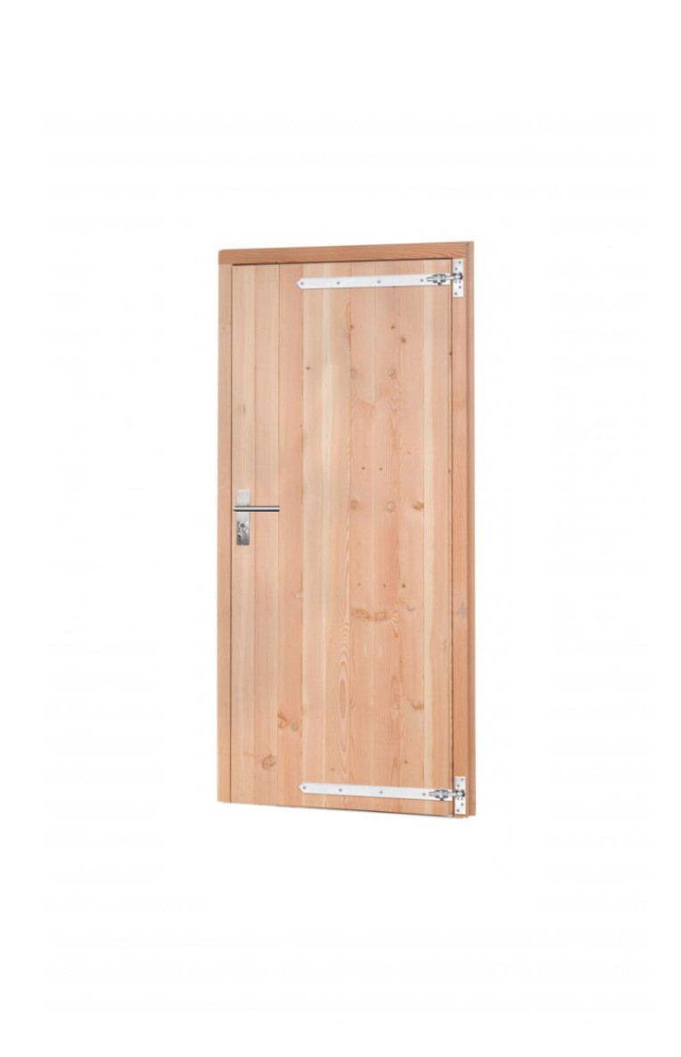 170608 – Douglas enkele dichte deur inclusief kozijn, rechtsdraaiend, 900mm x 2010mm, onbehandeld.