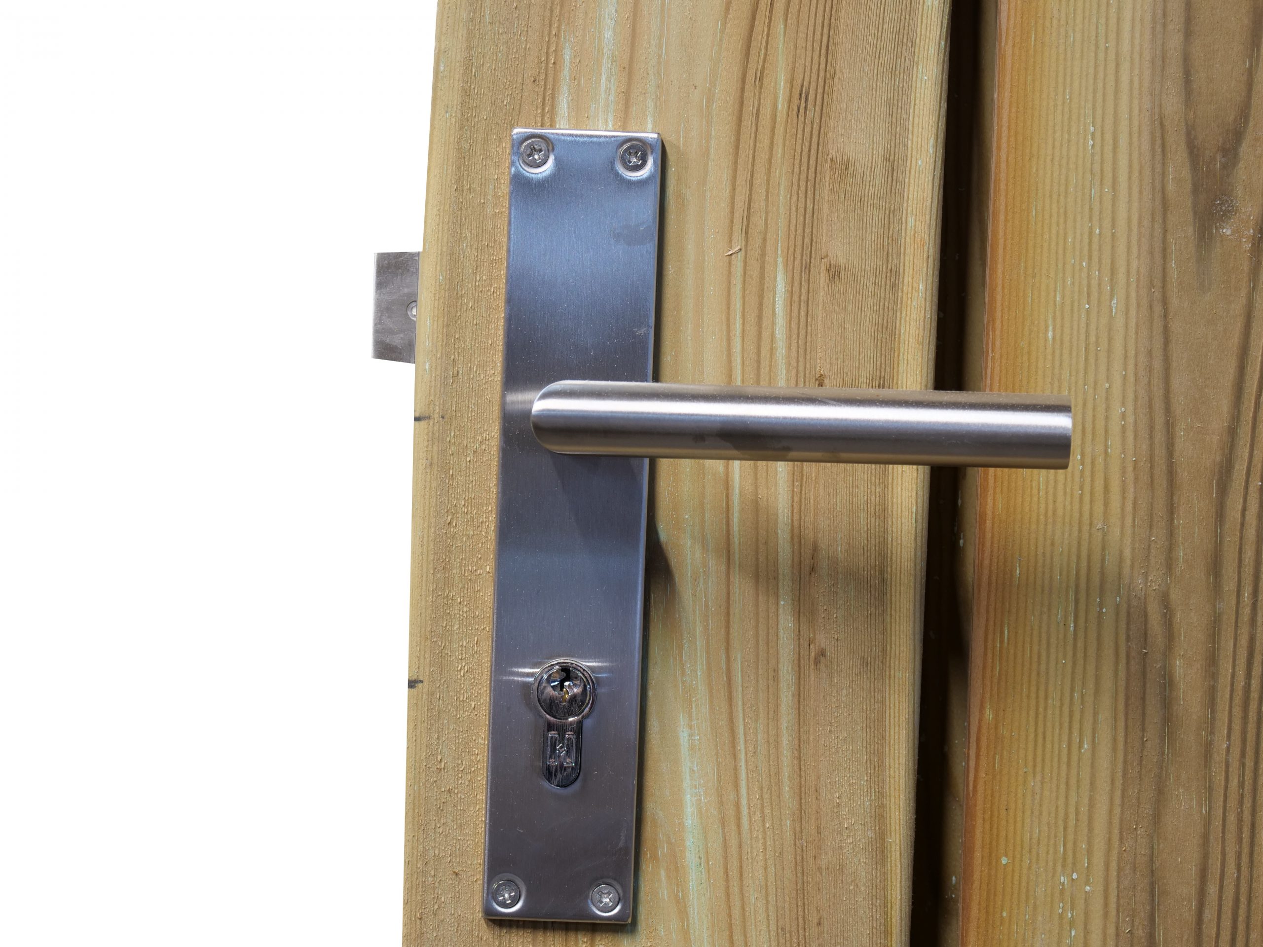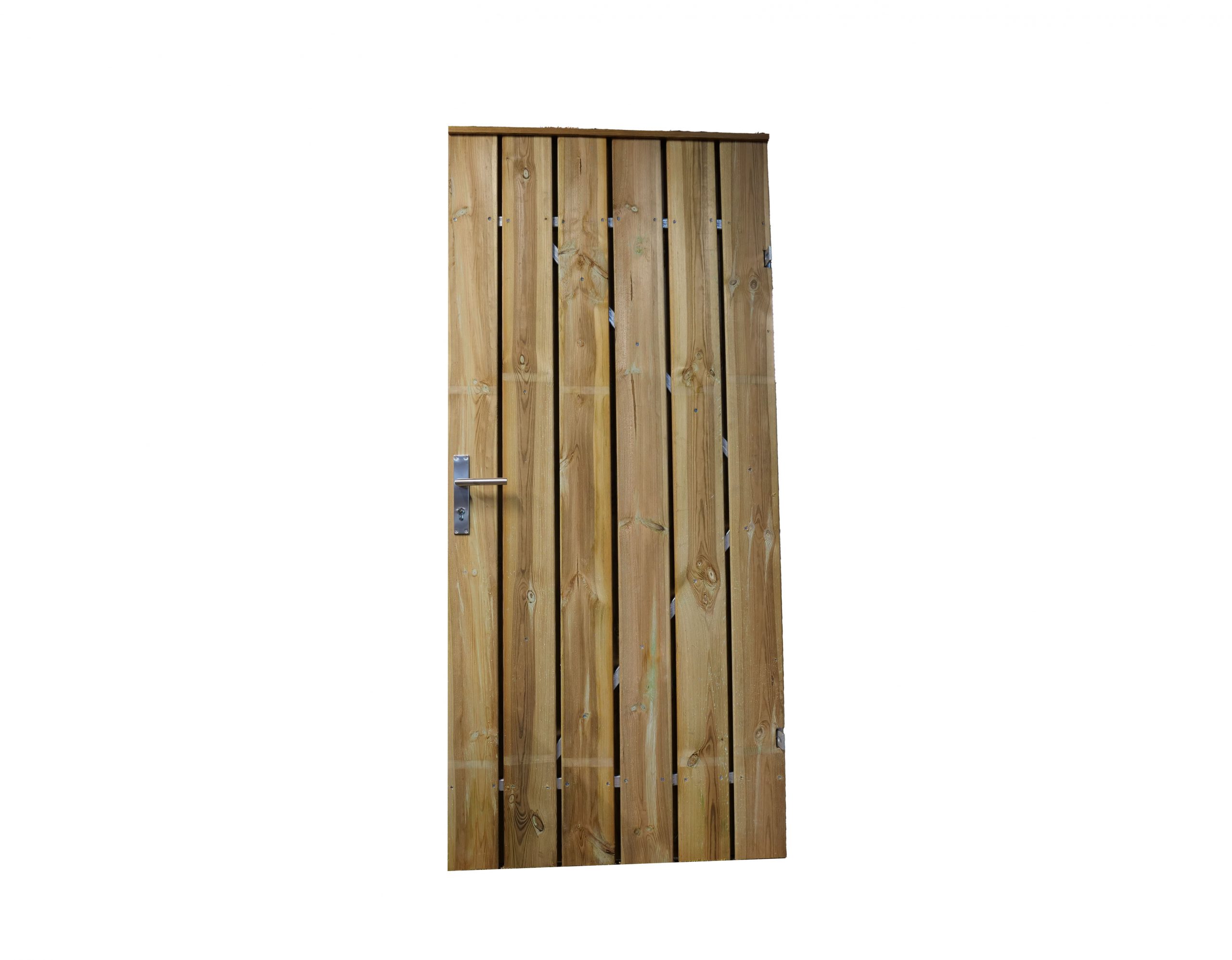 In ons assortiment hebben wij een geïmpregneerde poort met stalen frame compleet (diverse breedtematen) hoogte is 1970mm. Deze poort wordt compleet geleverd met een rvs cilinderslot, stelscharnieren en duimen.
