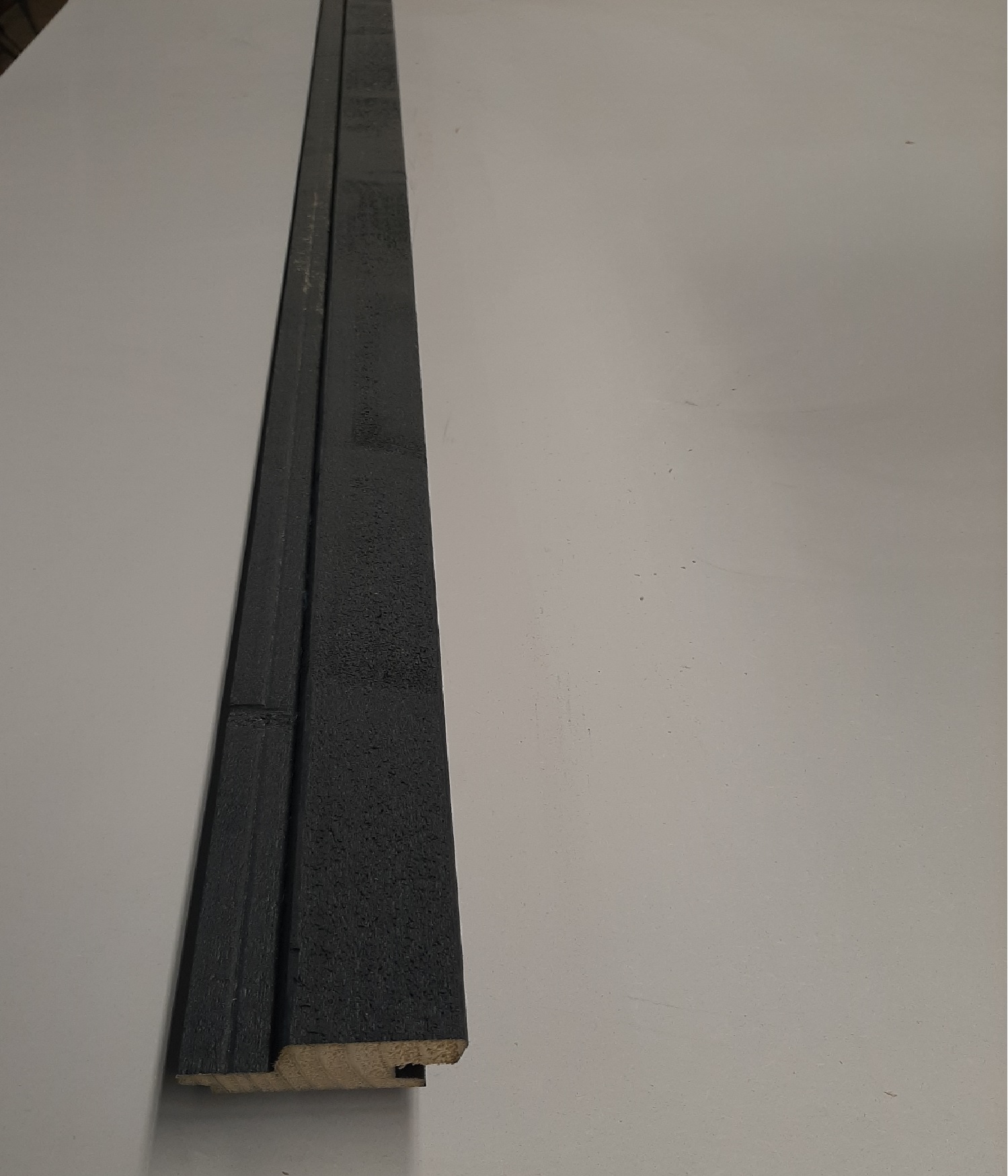 Enkel rhombus (Deens rabat) geïmpregneerd daarna zwart gespoten 70 x 28 mm (53 mm werkend)