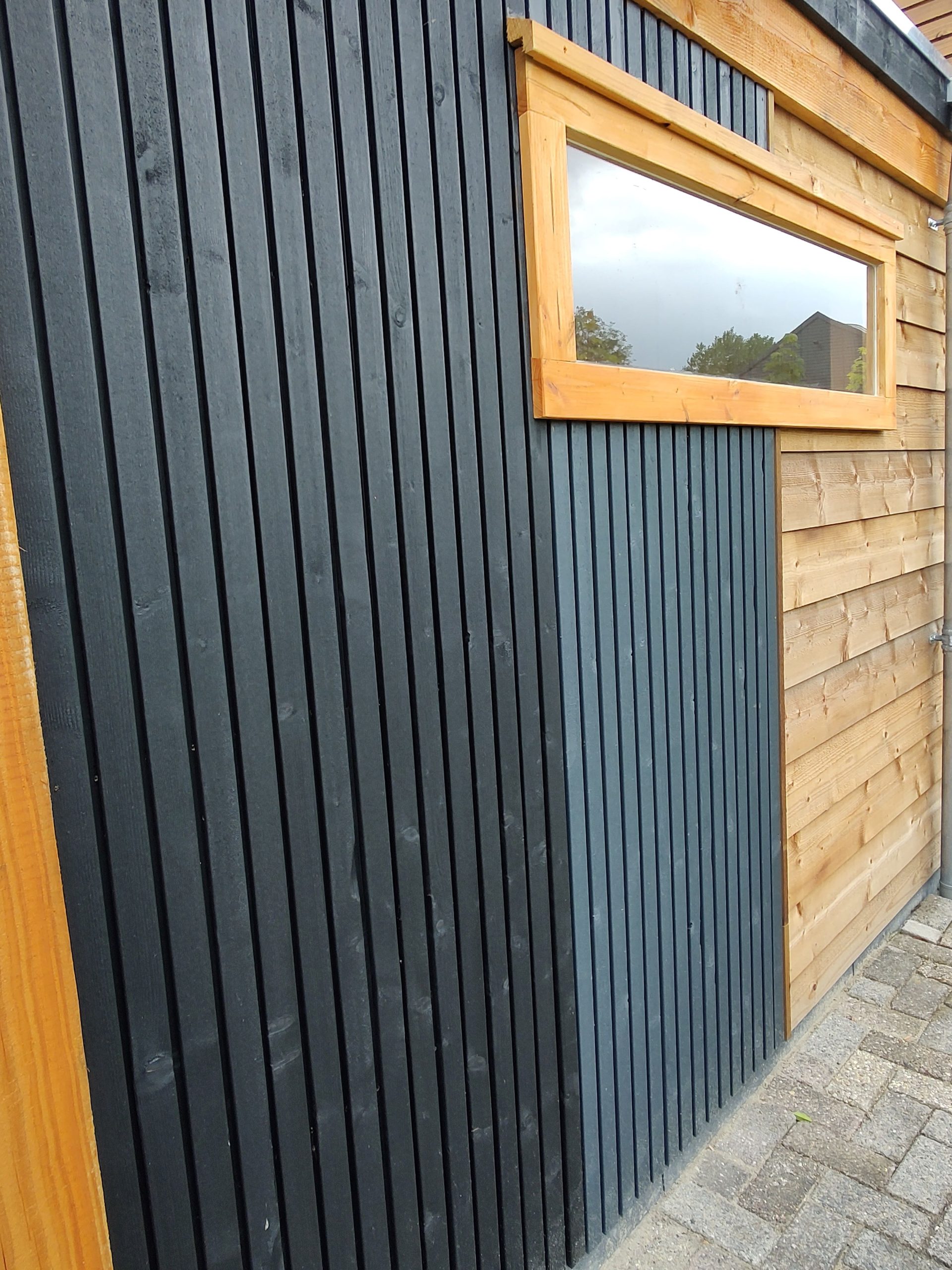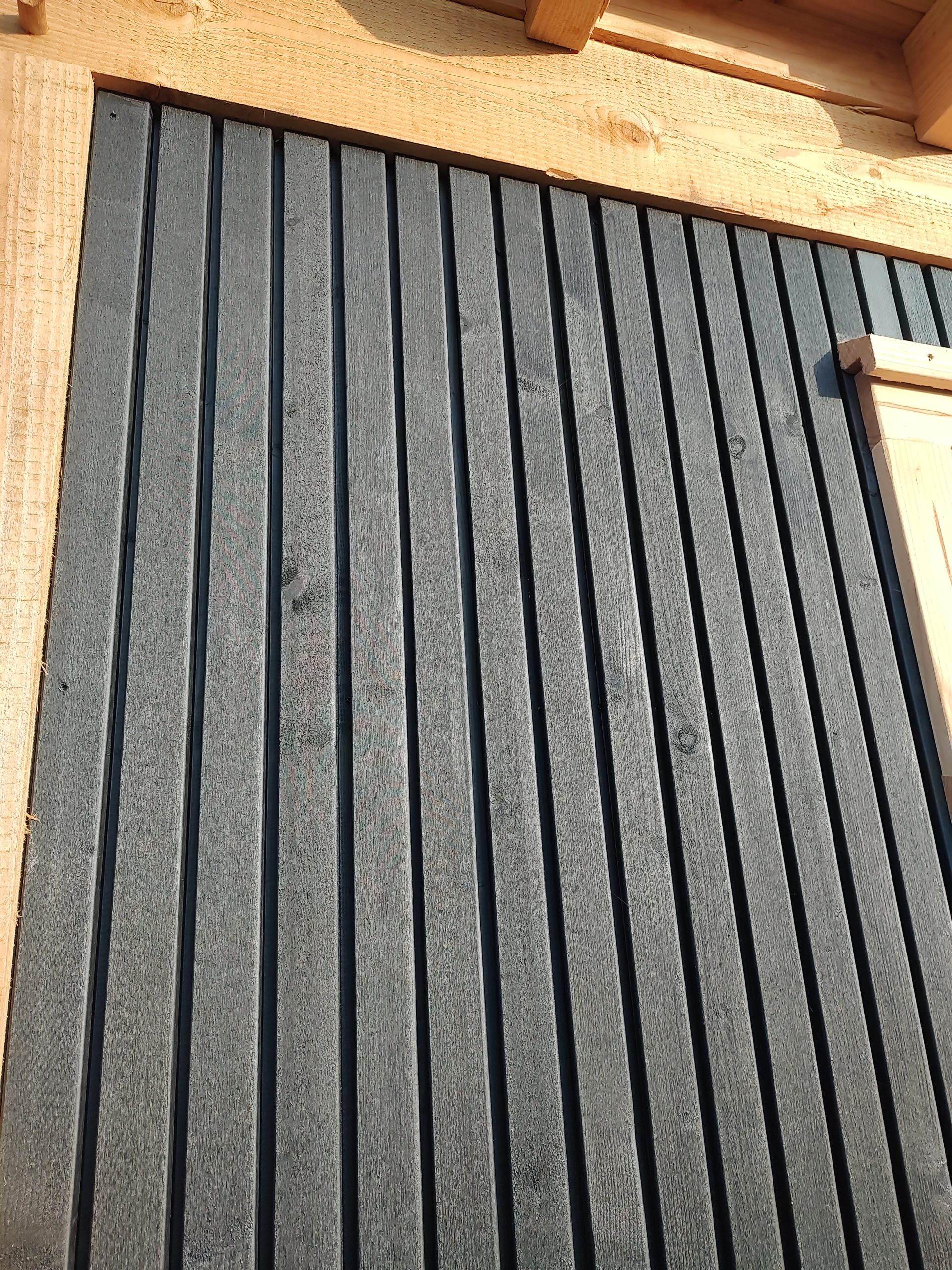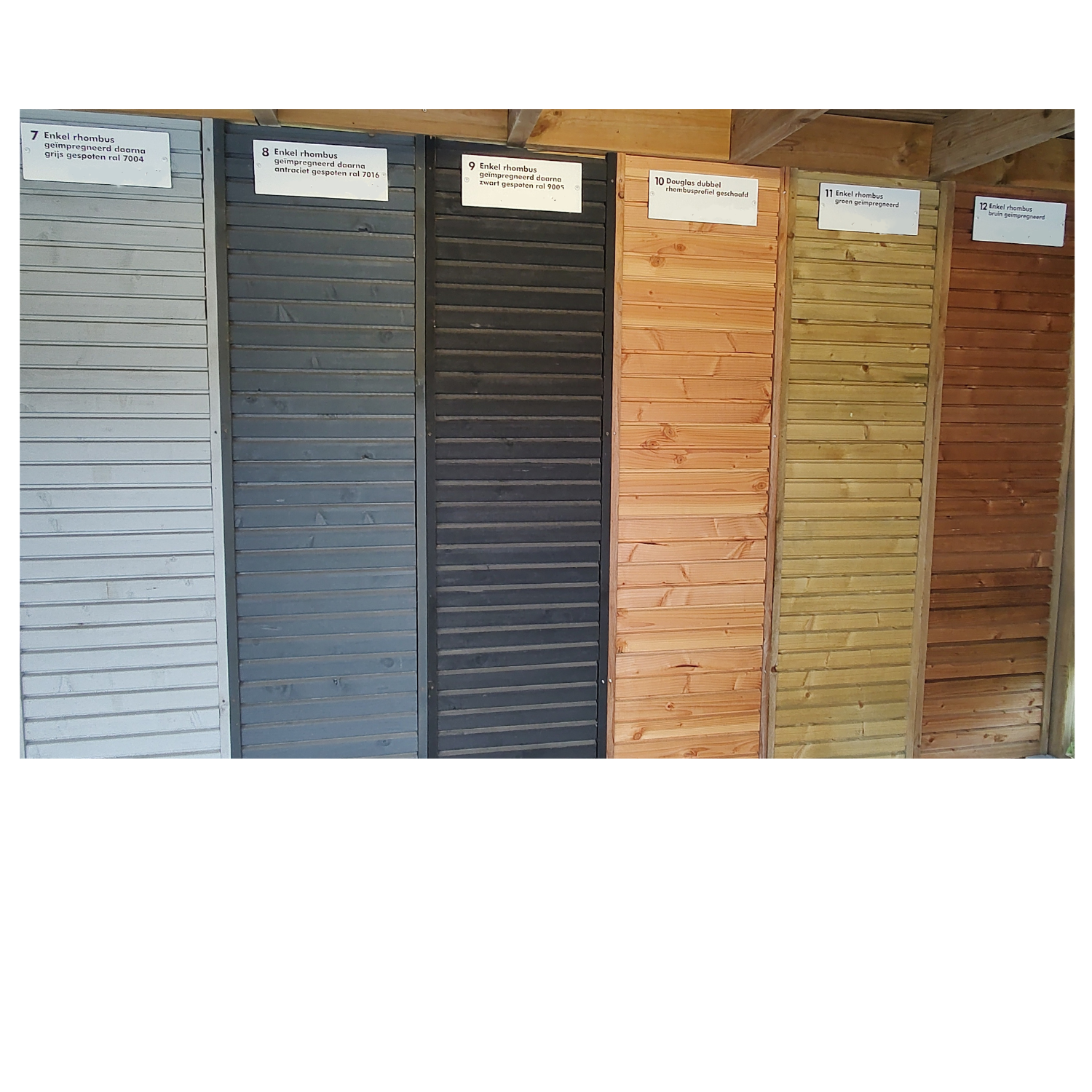 Ons enkel rhombus (Deens rabat) geïmpregneerd daarna zwart gespoten 70 x 28 mm (53 mm werkend) is een mooi product van Noord Europees vuren hout. Het wordt onder druk geïmpregneerd en is vast van structuur. Het is een ruitvormig profiel met vele toepassingsmogelijkheden. Denk bijvoorbeeld aan het gebruik als gevelbekleding, dat is op het moment erg populair en geeft uw woning, overkapping of schuur een luxe en eigentijdse uitstraling. Ook wordt het gebruikt voor schuttingen en erfafscheidingen, voor wanden in overkappingen en schuren en voor bijvoorbeeld het aftimmeren van een luifel, een balkon of een entree. Al met al is enkel rhombus een breed inzetbaar product, met als grote plus dat het erg makkelijk te verwerken is. Het Deens rabat wordt blind bevestigd en kan zowel horizontaal als verticaal toegepast worden. Onze vlonderschroef RVS Torx 4,0 x 30 is uitermate geschikt om dit profiel mee te bevestigen.