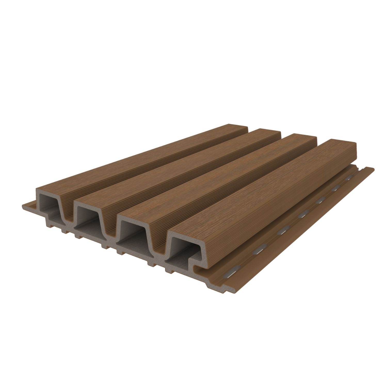 NewTechWood hout-kunststof-composiet wand profielen zijn vervaardigd uit een mix van gerecycled kunststof en houtvezels, wat het zeer stabiel en duurzaam maakt.