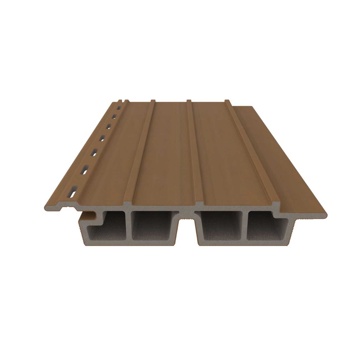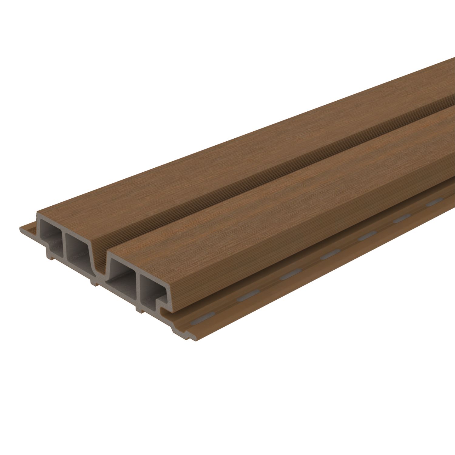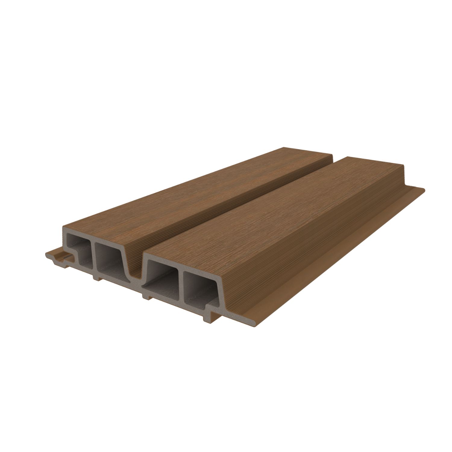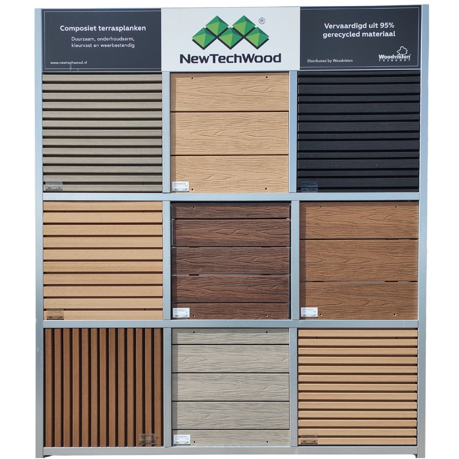 NewTechWood hout-kunststof-composiet wand profielen zijn vervaardigd uit een mix van gerecycled kunststof en houtvezels, wat het zeer stabiel en duurzaam maakt.