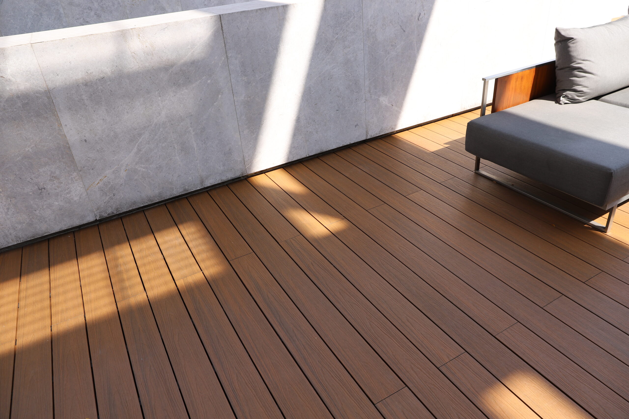 Deze composiet vlonderplanken zijn ideaal voor een onderhoudsvriendelijk terras die eenvoudig gelegd kan worden met behulp van de terrasclips.