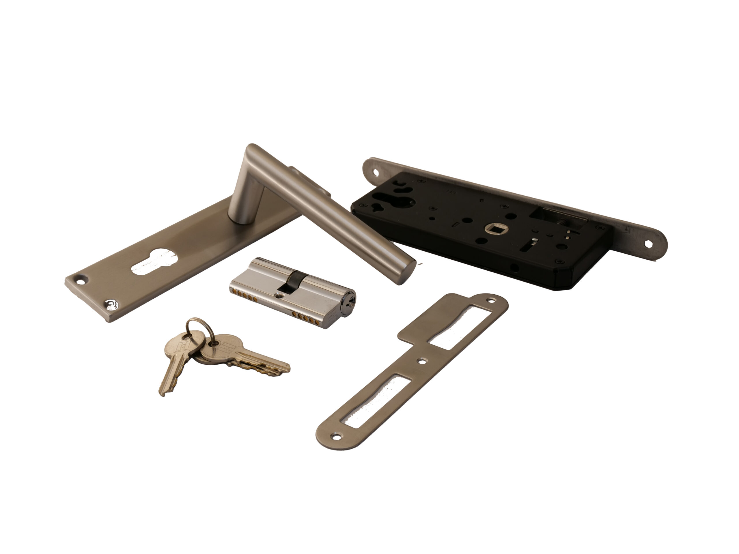 Met dit cilinderslot hebt u alles compleet, de klink en het schild zijn RVS