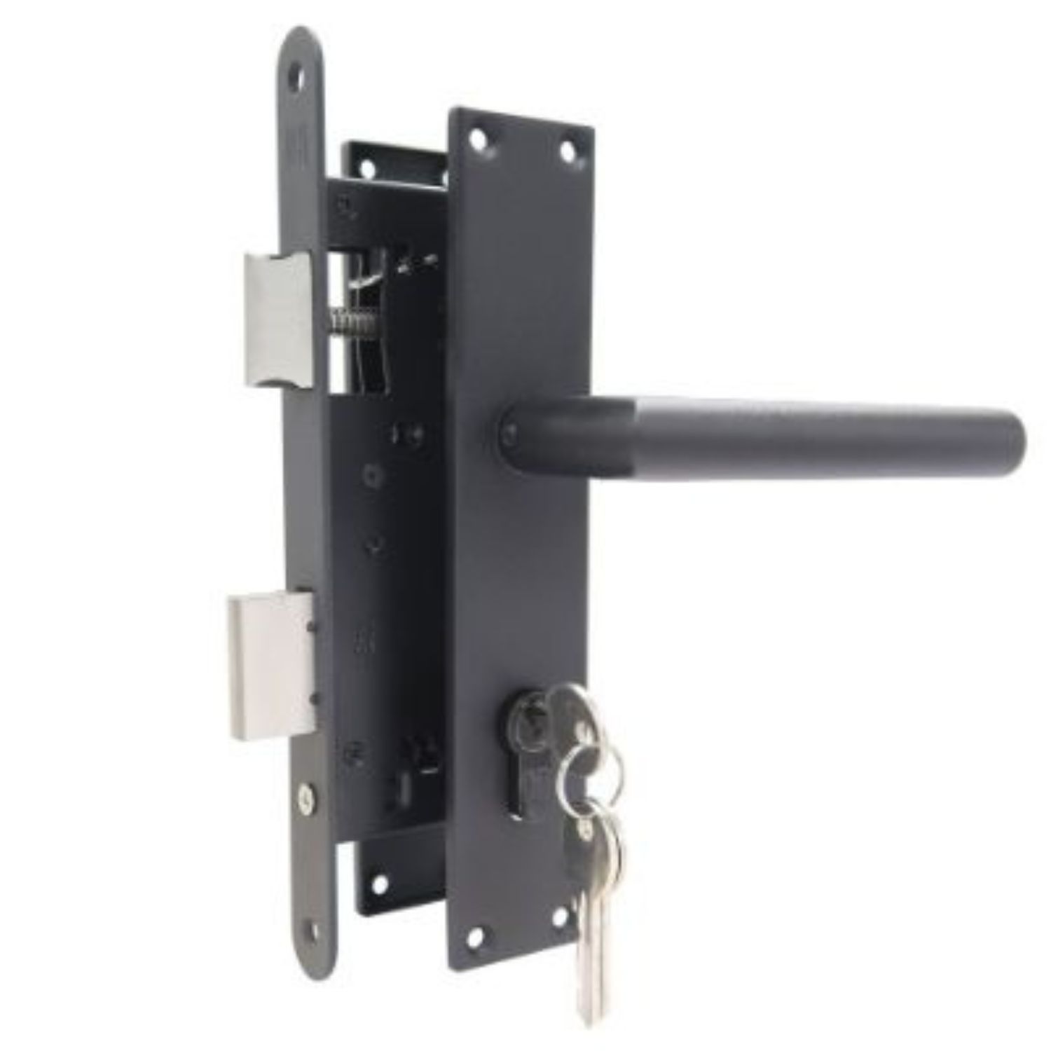 Met dit cilinderslot hebt u alles compleet, de kleur van de klink en het schild is zwart en recht