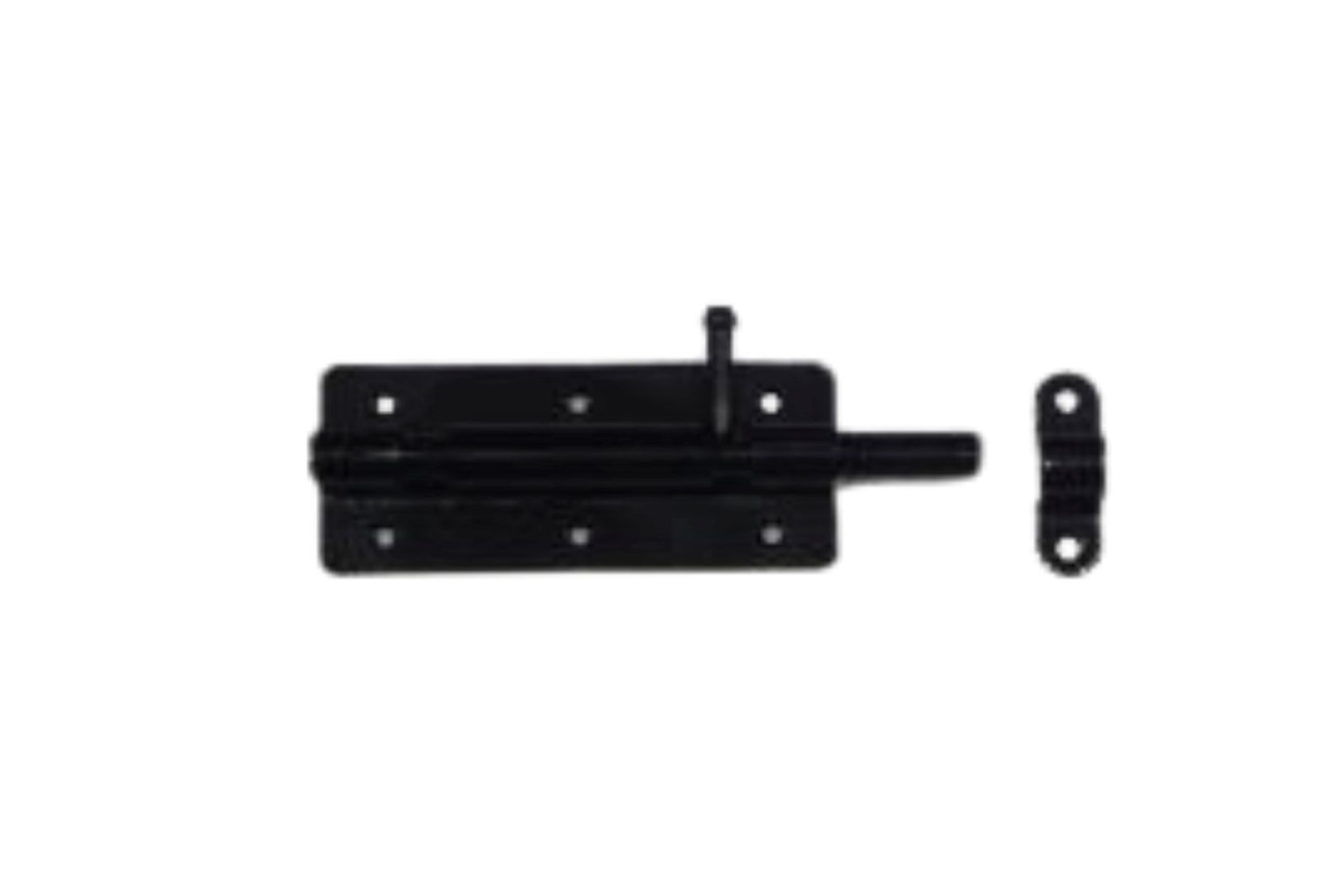 Deze plaatgrendel is zwart gecoat  en daardoor uitermate geschikt voor buiten