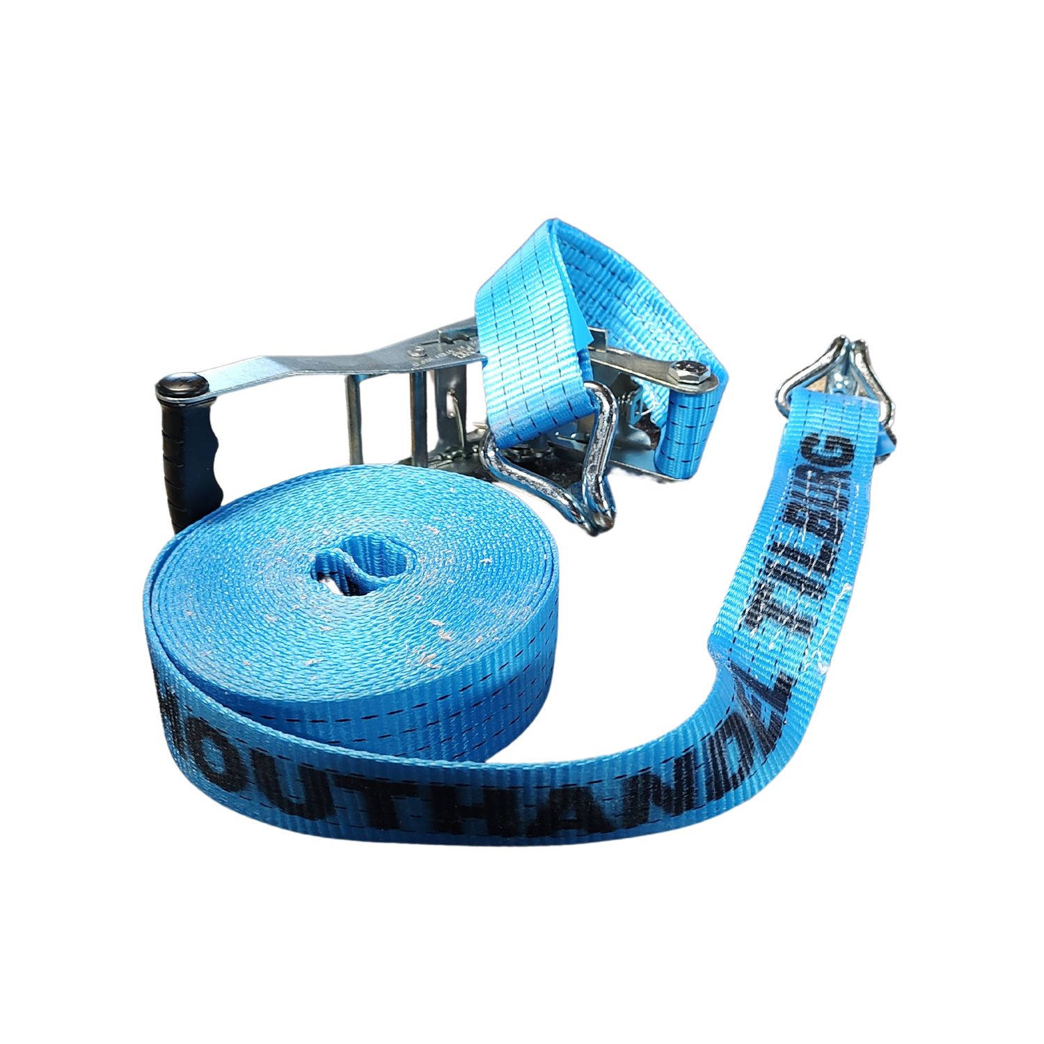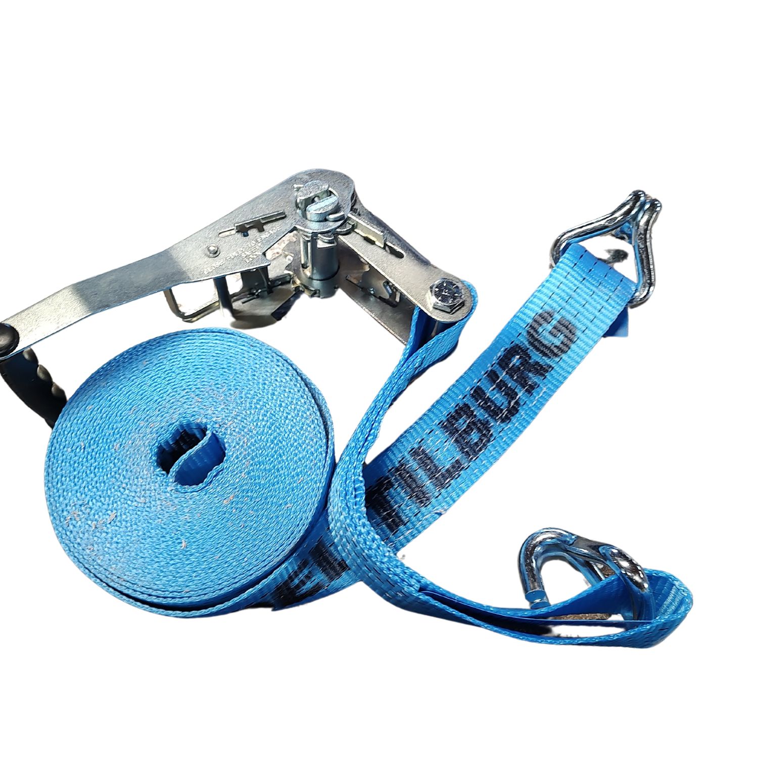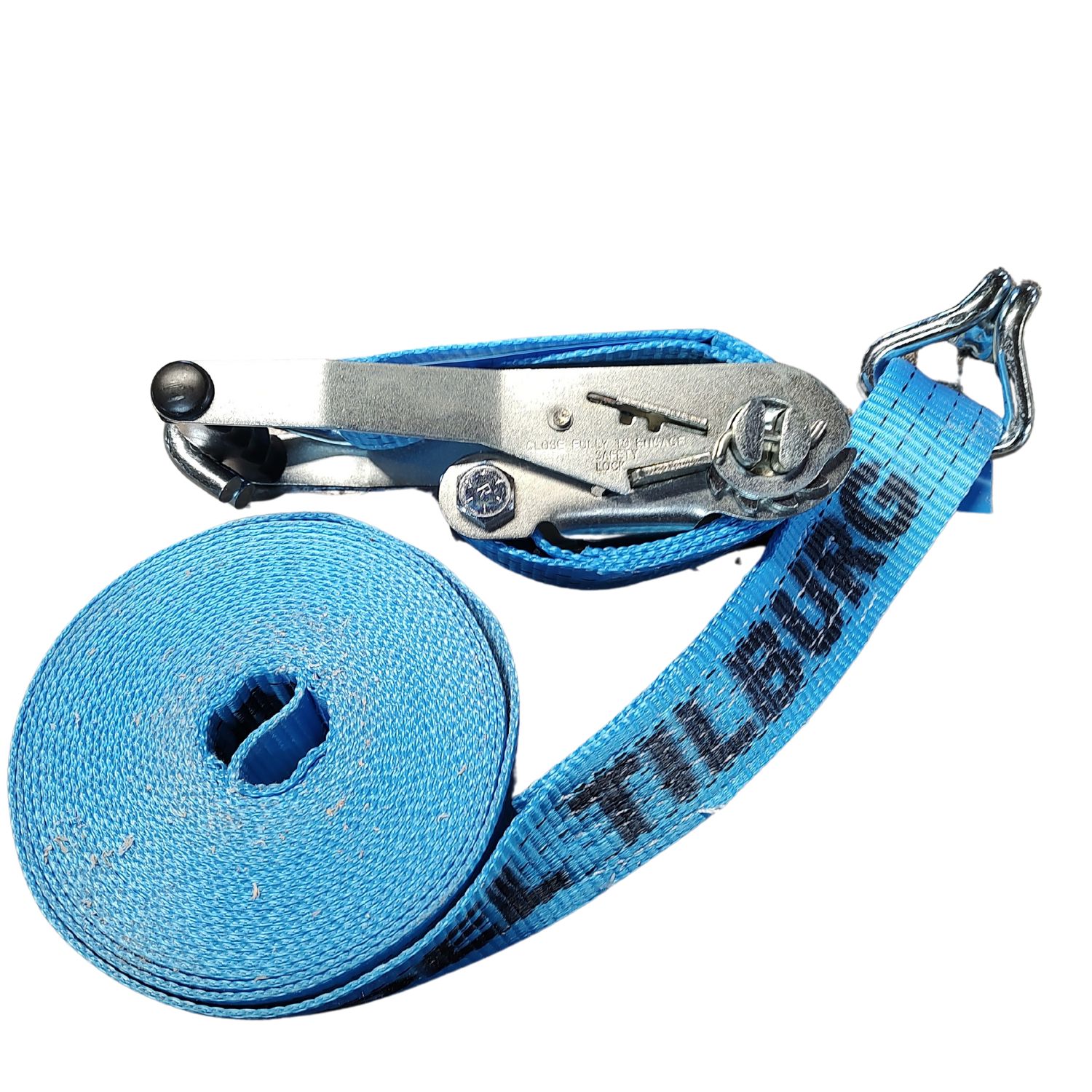 Onze 50 mm brede, 4 tons  Houthandel Tilburg Spanbandset is maar liefst 9 meter lang. Geschikt voor het vastzetten van  middel tot zware goederen.